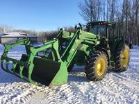 JD 640R loader, bucket, grapple joystick, cab, buddy seat, PowrQuad/ AutoQuad 20 speed 40 KPH transmission, left hand reverser, 3 pt hitch, triple rear hydraulics, 540/1000 pto, 16.9R28 frt & 520/85R38 rear rubber, frt fenders, rear fender extensions, only 2252 hours