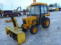 Yanmar 1.3 lt 20 Hp diesel engine, Prairie cab, heater, 4 speed transmission with high/lo range, 3 Pt hitch, 540 pto, 60" front mount snow blower, 60" under body mower deck, turf tires, 13.6-16 rear tires, 25x8.50-14 front tires, tire chains, manuals, 1255 hrs