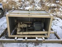 Baldor 30 Hp single phase motor, starter switch, mounted in metal box on skids, both 3" and 4" connections
