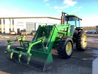 JD 280 loader, Q/A bucket with grapple fork, grill guard, 15 speed power shift transmission, cab, heat, radio, AC, hydraulic ride seat, (3) rear hydraulic outlets, 1000 PTO, Star Fire 3000 green light bar system, rear diff lock, rear inside wheel weights, 18.4 x 26 front (new) & 20.8 x 38 rear tires, 11,918 hours <br/>