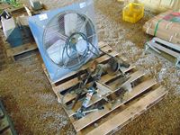 61 Pallet of (3) Propane Heaters, Trailer Jack, (2) Tiger Torches, Fan