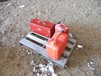 27 Pallet with (1) Craftsman Toolbox, (2) Jerry Cans