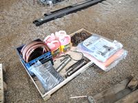 30 Pallet with (2) Unused Poly Tarps, Various Lengths Chain, Bug Wash, (2) Grease Guns, Garden Hoses