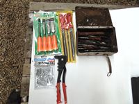 43 Unused Wood Chisel Set, Steel File Kit, Riveter, Post Drill Bits
