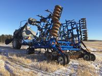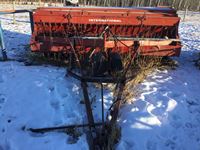 10" spacing, double shoot openers, steel packers, New Holland P1030 tow between two compartment 328 bu air tank, hydraulic loading auger metering rolls for wheat, oats and canola.