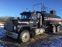 Mack 350 HP engine, Mack 18 speed transmission, Mack rears on spring suspension, water tank, pto drive pump, Alberta registered