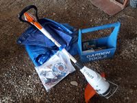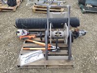 463 Pallet of Garden Tools, Plastic Hose Reel, Plastic Mesh Fence, Weed Eaters & Scissors