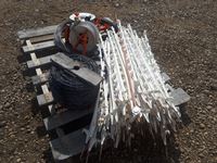 roll of barbed wire, (2) reels of elect fencing wire, 67+/- elect fence post, hay wire