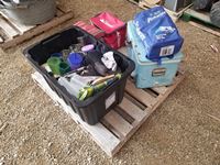 332 Pallet of Misc RV Items, Supplies, Antifreeze, RV Sewer Hose, Demand Pump & Weed Sprayer
