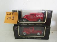 TR2-1R 1922 Studebaker Special 75 Anniversary 27752 issued 1997, TR-1G 1922 Studebaker Gold 500 issued 1997, TR2-2R 1934 Ford Panel 25008 issued 1998, TR2-3R 1935 Ford Pickup 8814 issued 1999, TR2-4R 1953 Willy's Jeep Pickup 25002 issued 2000, TR2-5R 1947 Ford Panel 19202 issued 2001