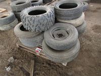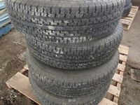(2) Mobile Home 8-14.5 Tires with rims, (2) 253/85R16, (1) 265/75R16, (3) 31X10.5R15