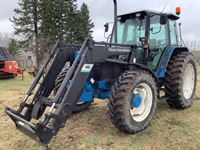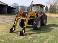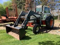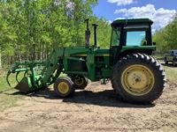 John Deere 260 loader, Q/A bucket, grapple, cab, heater, radio, hydraulic ride seat, front grill guard, 15 speed power shift transmission, 3 PTH & top link, dual rear hydraulic outlets, inside rear wheel weights, 18.4X38 tires only 2 years old, only 4604 hours