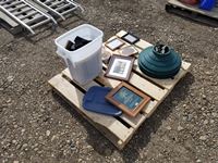11 Pallet of Christmas Tree Stands & Container of Picture Frames