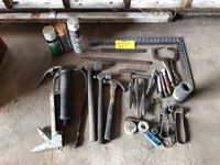 square, hammers, welding tools, grease gun, paint , misc