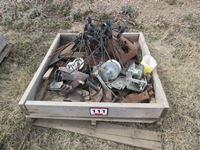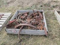 winch, spring tooth harrow teeth, assortment of cultivator shovels & spikes