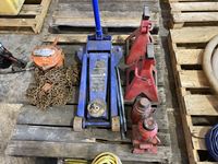 2 Ton chain hoist, 3 1/2 Ton Floor Jack, (2) 6 Ton Jack Stands, (2) Bottle Jacks