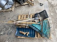 Shovels, rakes, pick axe, forks, ball hitches
