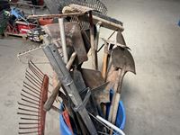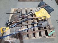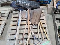 1818 Pallet of Shovels, Potato Fork, Rake, Spades