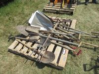 1817 Pallet of Shovels, Rakes, Spades, Hay Fork