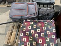 Suitcase, coat hanger, kids mattress, sleeping bag