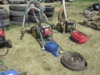 (3) lay flat hoses, suction hose
