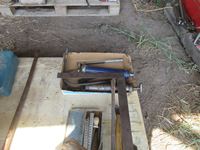 3 ft clamps, axe, trouble light, tool box with tools