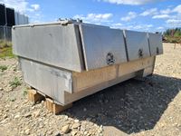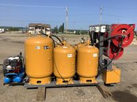 ASME tanks, (1) 120 gal used oil tank, (3) fresh oil & fluid tanks, (1) epoxy lined coolant and antifreeze tank, 22 CFM compressor driven by Honda 8 HP electric start engine, reels and hoses (1) 1 inch X 50 ft used oil, (3) 3/4 inch X 50 ft fresh oil, (1) 5/8 inch X 50 ft fresh oil, forklift, able (empty only), 4 ft 1 inch W X 11 ft 2-3/4 inch L, empty weight 2480 lbs