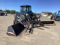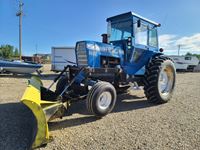 Ezee-On 100 loader with 6 ft bucket & grapple, Ford 6 cylinder, 120 HP, diesel, 16 speed transmission, rear hydraulic outlet, 540 PTO, factory 3 PT hitch, hydraulic, 9 ft blade, 10.00-16 front, 18.4-38 rear tires
