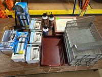 (2) thermos, (4) heated cups, desk lamp, etc.