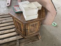 Chairs, end table, stop sign, household items