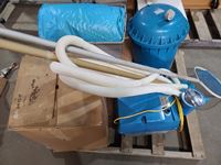 Pump, sand filter, skimmer, (2) liners, pool cover, vacuum