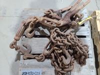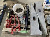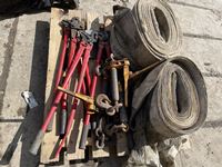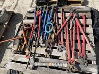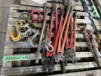 (4) truck chain pliers, (3) bolt cutters, (2) load binders, assorted clevis, hitch, chain sling