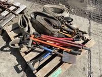 (3) slings, (2) truck chain pliers, (2) small shovels, bolt cutter, (4) load binders