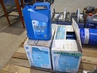 (5) Mobil Super 5W30 4.4 L, (2) Duron 0W30 4 L, (1) Schaeffer 7000 4 L, (5) Chevron 5W30 partially full
