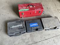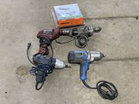 18V Powerfist cordless drill no charger, Mastercraft heat gun, AC tool, tool box for testing trailer lights