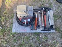 wrenches, floor jack, charger, bottle jack, come along