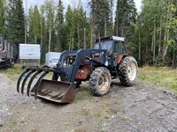 Loader with grapple bucket, 3 hydraulic outlets, draw bar, 3 point hitch, 540 PTO with bolt on 1000 drive, 13.6-28 front tires, 18.4-38 rear tires, new tires to fit selling at ID# 21ID0107-004