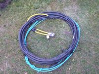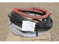 (1) new 3/8 X 76 inch, (2) new 3/8 X 32 inch, (2) 1/2 X 12 ft used once, (2) new 1/2 X 9 ft hydraulic hoses