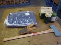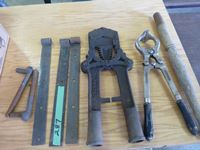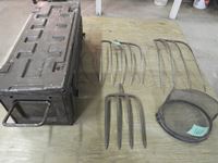 163 (3) Pitch Forks Heads, Army Tool Box, Mesh Basket