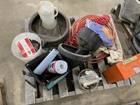 Tool cart, extendable stand, 1 inch poly pipe, antique fire extinguishers