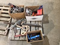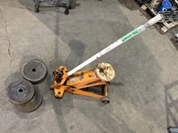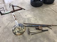 Hammers, mallets, floor jacks, Mastercraft 100 amp welder, mitre saw parts