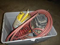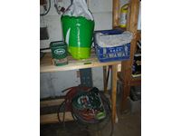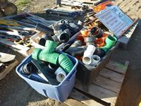 100 ft soaker hose, (2) boxes of large garbage bags, knee pads, boot ice cleats, garbage picking tools, work gloves, (1) tote of large garbage bags