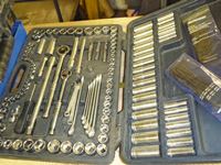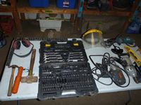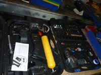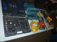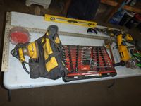 Socket Tool Kit, 1/2 inch DeWalt cordless drill with (1) battery & charger, drill bits, miscellaneous hardware, metal stamp set, wire wheels