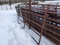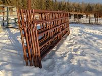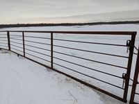 2-7/8 inch pipe frame, 6 sucker rod rails, (1) panel with 12 ft cut out water bowl gate, (1) panel with 4 ft gate