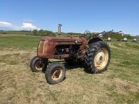 2 cylinder gas engine, electric start, 6 speed transmission, PTO, (1) hydraulic outlet, hand clutch, 6.50-16 front & 14.9-26 rear tires