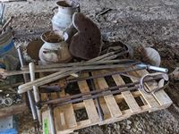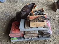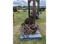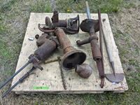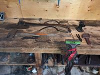 Broad axe, double head axe, small screw jack, wrenches, leg vise, miscellaneous