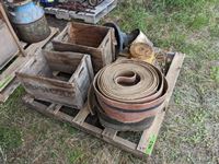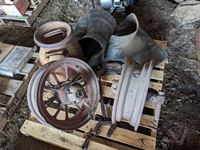 91 Small Wagon, Qty of Metal Tractor and Implement Seats