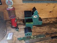 (4) locks, Coke bottle, glass fire extinguisher, egg beater, wrench, wooden level