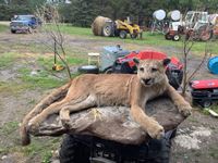 decking blade, A/C cab, hyd dual function grapple, 35.5x32 tires, 2 sets chains