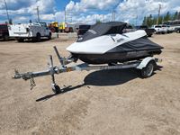 3 seater, fiberglass reinforced composite hull, Jet pump, storage cubbys, cover, c/w EZ Loader trailer, 2 keys